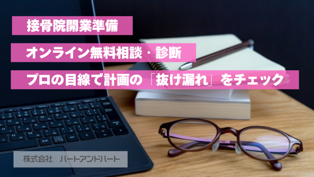柔整・鍼灸の開業から運営まで 月商150万円を目指す院経営にコミットする専門パートナー 開業支援 医療機器販売 運用支援 開業支援 運用支援 医療機器販売 治療院の“持続的な成功”をワンストップでサポート 保険施術と自費施術をバランスよく組み合わせる“ハイブリッド経営” を軸にコンセプト設計・資金調達・機器選定・集客・保険請求までをワンストップで支援します。JBA協会との連携により、煩雑な保険請求や返戻対応も専門スタッフがサポート。地域で選ばれ続ける治療院づくりを実現します。 HEART AND HEART HEART AND HEART HEART AND HEART HEART AND HEART HEART AND HEART HEART AND HEART REASON ハートアンドハートが選ばれる理由 Reason01 成功まで伴走する開業サポート 単なる「開業代行」ではなく、開業後の安定経営・集客・請求までワンストップでサポート。開業後も安心して経営できる「長期的な伴走支援体制」が整っています。 Reason02 売上を最大化する経営サポート 保険・自費の双方を最適化し、無理のない収益構造を構築。集客支援と組み合わせることで、安定した経営成長を実現します。 Reason03 JBA協会によるサポート 一般社団法人 日本柔整鍼灸協会(JBA)と連携し、複雑な保険請求・入出金管理・返戻対応を専門スタッフが代行。先生が“治療に専念できる時間”を生み出します。 Reason04 成果を見据えた機器提案 院のコンセプトに合わせた最新医療機器の販売に加え、導入後の運用支援やメニュー化までサポート。「売って終わり」ではなく、「導入して成果を出す」まで伴走します。 Reason05 26年以上の支援実績 愛知・岐阜・三重・静岡など東海エリアを中心に、26年以上にわたる豊富な成功事例をもとに「地域で勝てる戦略」を提案。地元密着の実践的ノウハウで、確かな成果を支援します。 SERVICE サービス内容 医療機器販売最新の治療機器から中古・リースまで、治療方針・予算に合わせた最適な機器提案。 詳しく見る 開業支援コンセプト設計から立地選定、資金計画、集客まで。 夢を“現実”に変えるためのトータルサポート。 詳しく見る 運営支援保険請求・返戻対応・集客支援など、 “治療に専念できる環境”をつくるバックアップ体制。 詳しく見る INFORMATION セミナー情報 開業準備・経営・集客など、各テーマで無料セミナーを開催中。最新の制度改正情報や成功事例を学べます。 接骨院開業の無料相談・診断|プロの目線で計画の「抜け漏れ」をチェック 開催日時: 調整の上決定いたします。※所要時間30分~60分程度 開催方法: オンライン 失敗しない接骨院開業のための無料個別相談|物件・集客・経営を90分で整理 開催日時: 調整の上決定いたします。※所要時間90分~120分程度 開催方法: オンライン 物療機器の無料出張デモ&収益シミュレーション|効果と利益を可視化 開催日時: 随時開催(貴院のご都合に合わせて調整/所要時間60~90分程度) 開催方法: 会場開催 詳細はこちら VOICE お客様の声 お客様の声① 一宮市|あるしあ鍼灸接骨院・整体院様 お客様の声② 名古屋市港区|入場のみなと さかもと接骨院 お客様の声③ 西尾市|西尾いろどり接骨院 詳細はこちら VOICE お客様の声 お客様の声① 一宮市|あるしあ鍼灸接骨院・整体院様 お客様の声② 名古屋市港区|入場のみなと さかもと接骨院 お客様の声③ 西尾市|西尾いろどり接骨院 詳細はこちら VOICE お客様の声 VOICE お客様の声 FAQ よくある質問 医療機器導入や開業準備など開業前によくいただくご質問をまとめています。資金計画・エリア対応・相談方法など、疑問をすぐに解決。 詳細はこちら COMPANY 会社概要 事務所名 株式会社ハートアンドハート 代表者 代表取締役社長 竹田 潔 所在地 〒464-007愛知県名古屋市千種区内山三丁目10-17今池セントラルビル8F 電話番号 052-938-9810 FAX番号 052-938-9815 E-mail info@heartandheart.co.jp 創業 1975年 資本金 1,000万 従業員数 12名 事業内容 最新医療機器、中古医療機器の販売 衛生材料、備品等の販売 接骨院・整骨院・治療院の新規開業支援コンサルティング 有料職業紹介事業 営業時間 8:30〜17:30 定休日 土曜・日曜・祝日 許認可 高度管理医療機器等販売業:名高機第1340号古物商許可番号:愛知県公安委員会 第541011401600号 有料職業紹介事業:23-ユー301294 ACCESS アクセス 株式会社ハートアンドハート 〒464-007 愛知県名古屋市千種区内山三丁目10-17今池セントラルビル8F 交通アクセス 名古屋市営地下鉄 東山線・桜通線「今池」駅 1番出口より 徒歩約1分