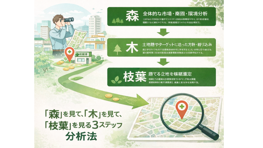 そのため、この記事では、大きな視点から小さな視点へ、つまり「森を見て、木を見て、枝葉を見る」という順序で、先生の成功確率を最大化する「勝てる場所」を見つけ出すための、3ステップ分析法を徹底解説します。